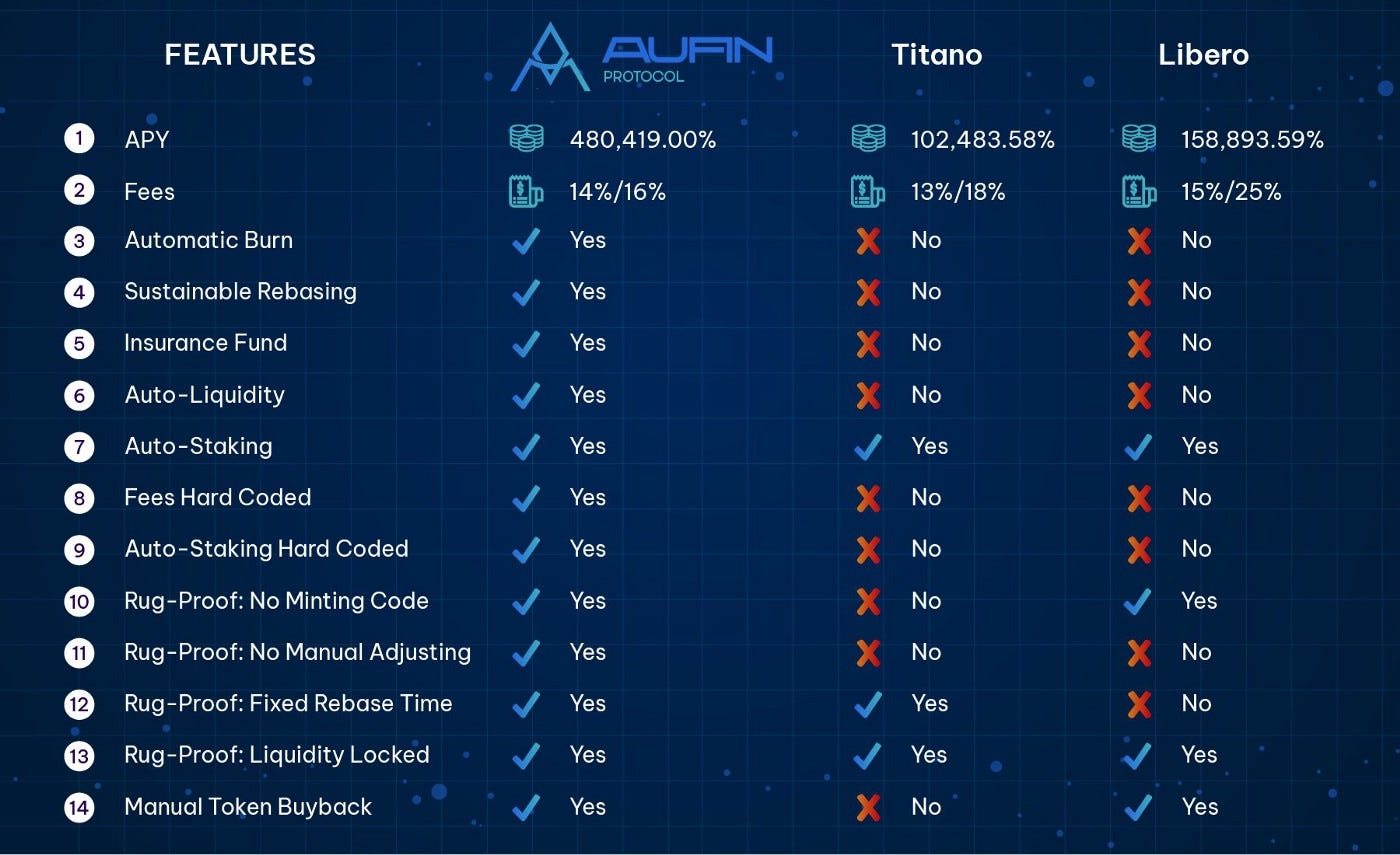 AUFIN offers a high marking loan fee with zero dangers. AUFIN offers a stage where you can procure interest by keeping your tokens in the store pool and get prizes by marking AUFIN tokens. The more tokens you stake, the higher is your award.